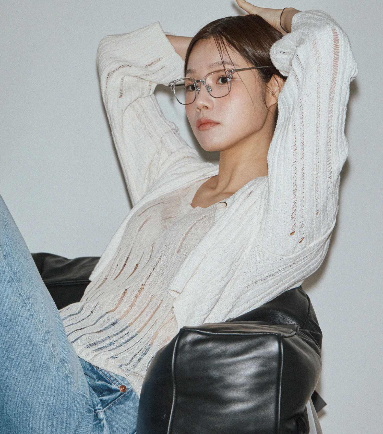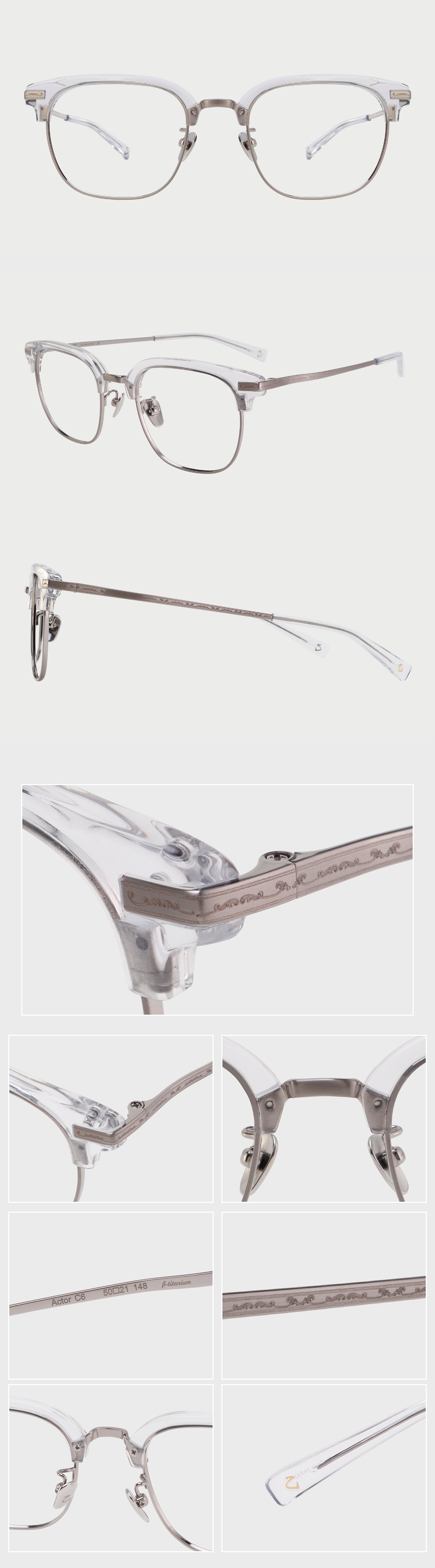 C6 透明板材搭配霧面銀色鈦金屬,展現乾淨清透、簡約俐落的高級質感