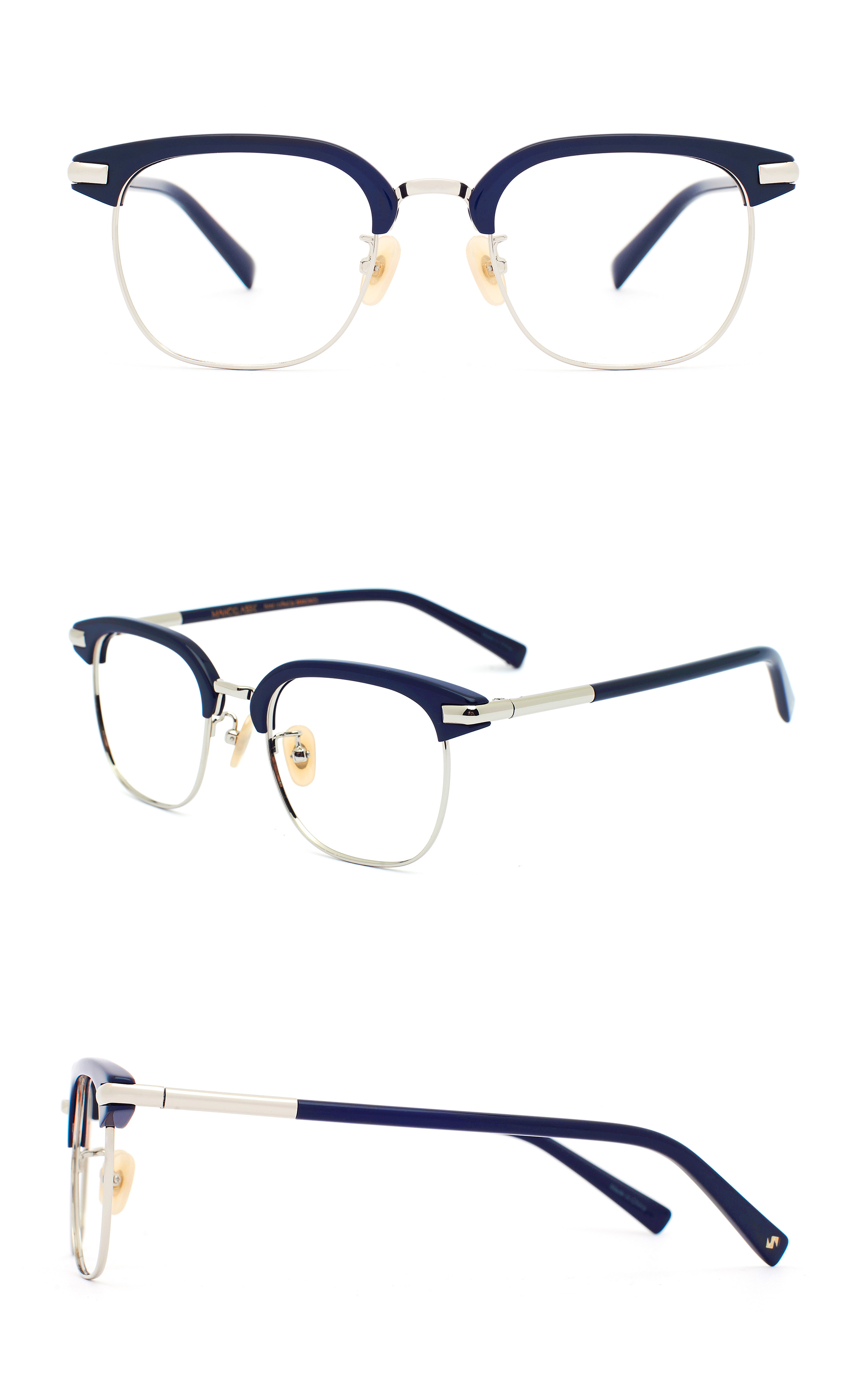 方形眉架框|C3 海軍藍 x 銀色|沉著有型