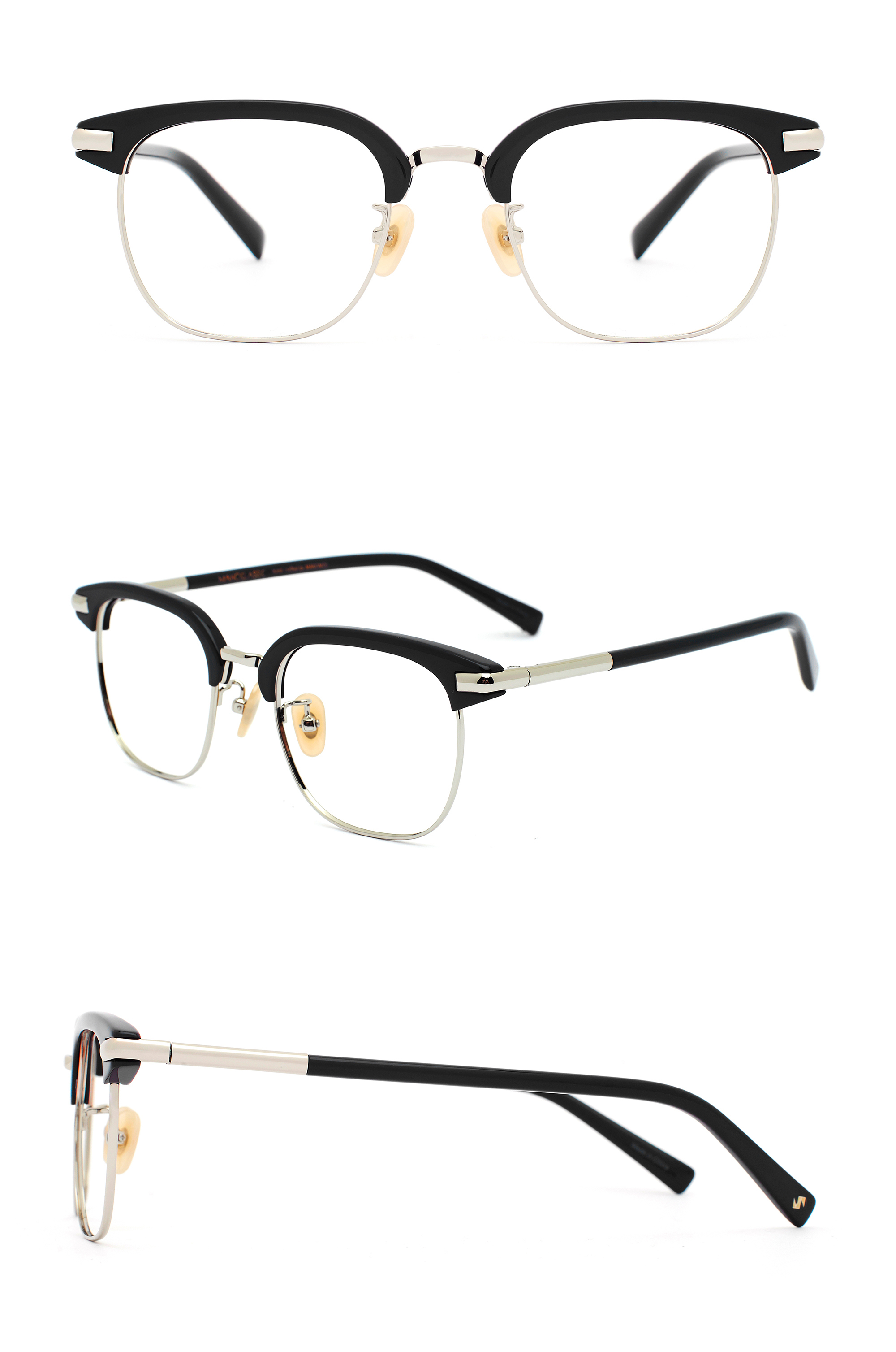 方形眉架框|C7 經典黑 × 銀色金屬|俐落經典