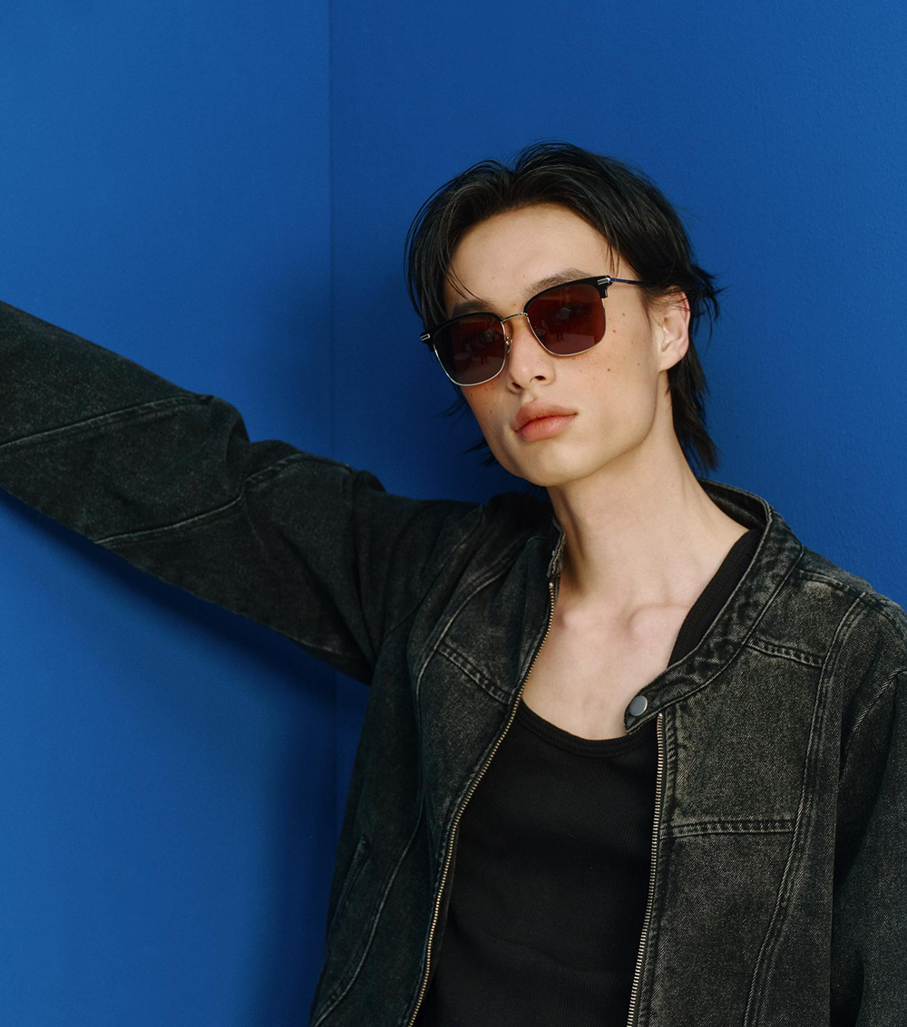 HOUSE 系列以醋酸纖維與金屬材質結合,打造質感細膩的哈金框太陽眼鏡。纖細的醋酸纖維長鏡腳提供柔軟、舒適的佩戴感,而寬方形作為框型基底,塑造沉穩、耐看的經典氣質。