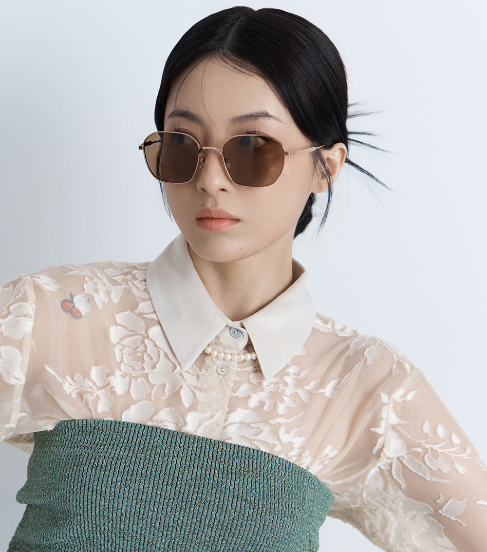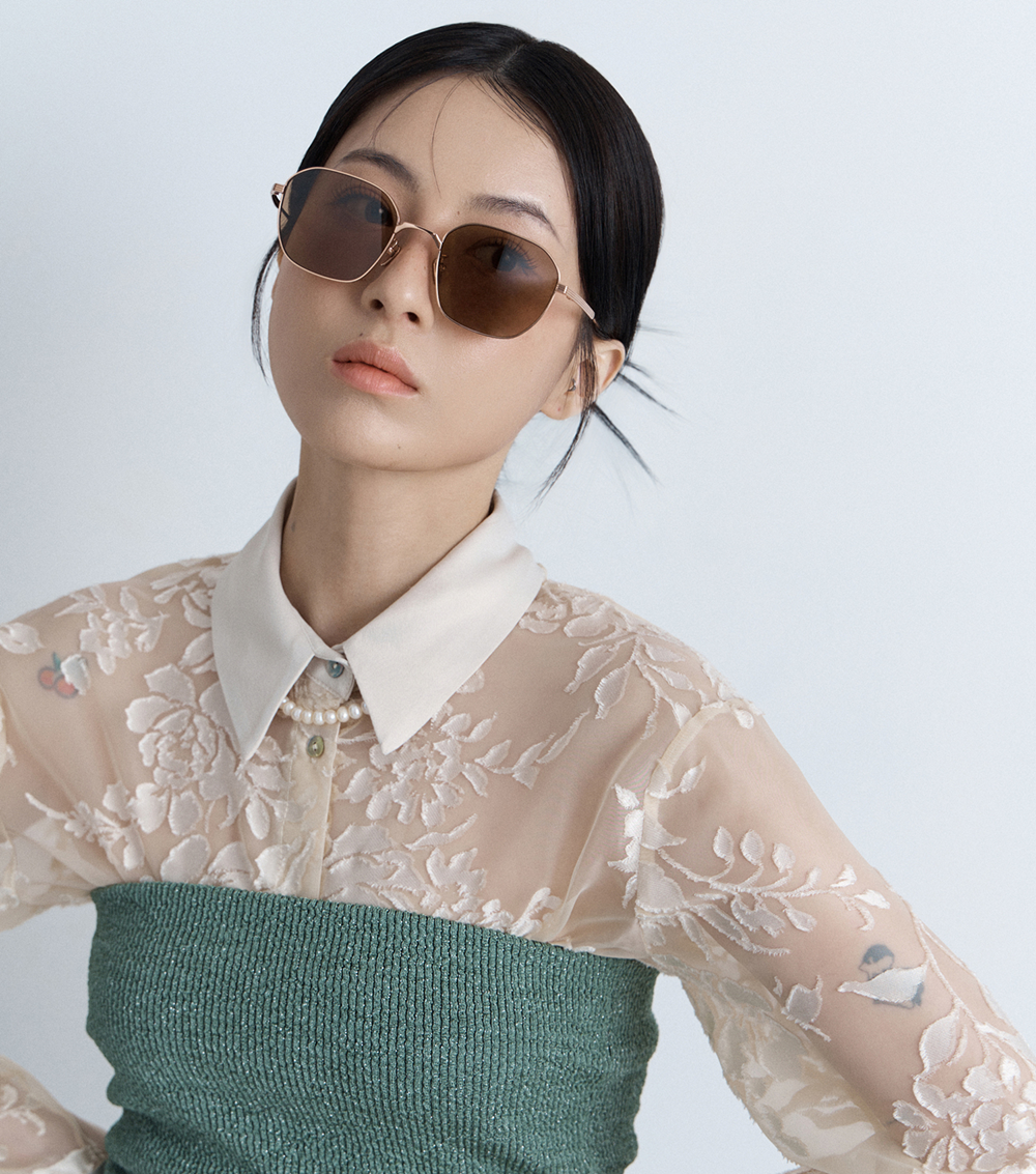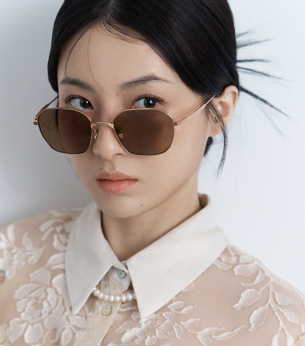 C4 採用 玫瑰金金屬框 搭配 棕色鏡片,呈現柔和、富有女人味的氛圍,休閒海洋風格更具優雅質感。