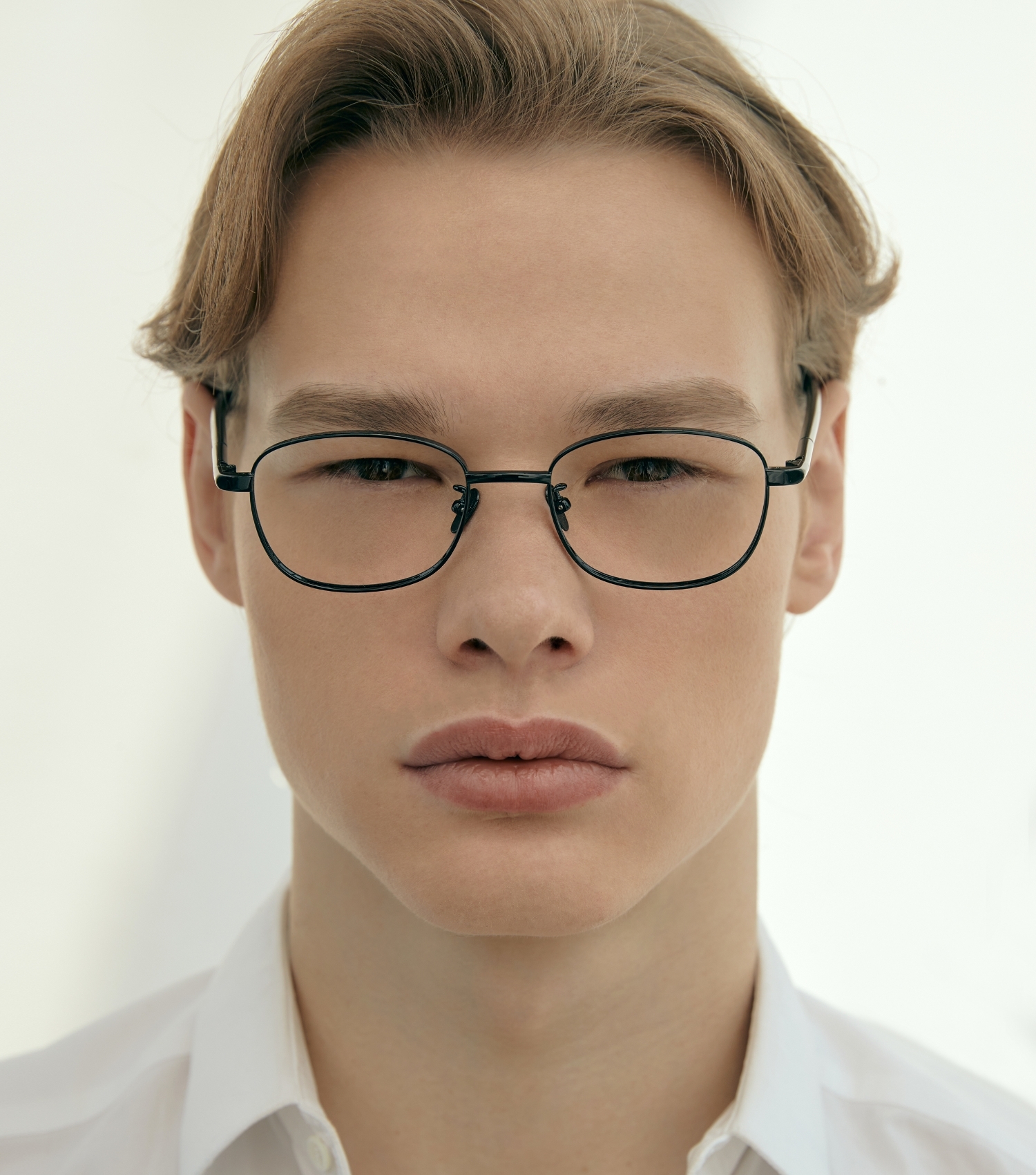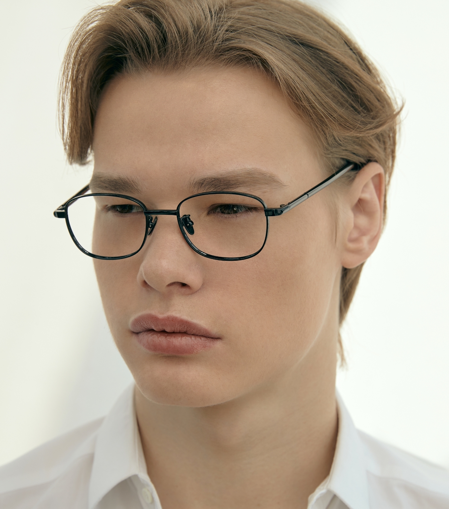 黑色鈦金屬與雕刻紋理交織出的光影變化,使眼鏡在低調中依然散發濃厚存在感。