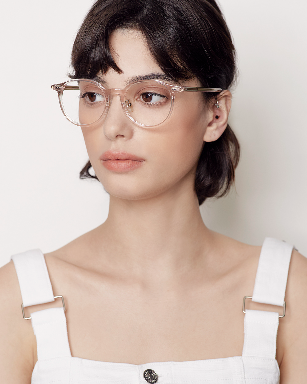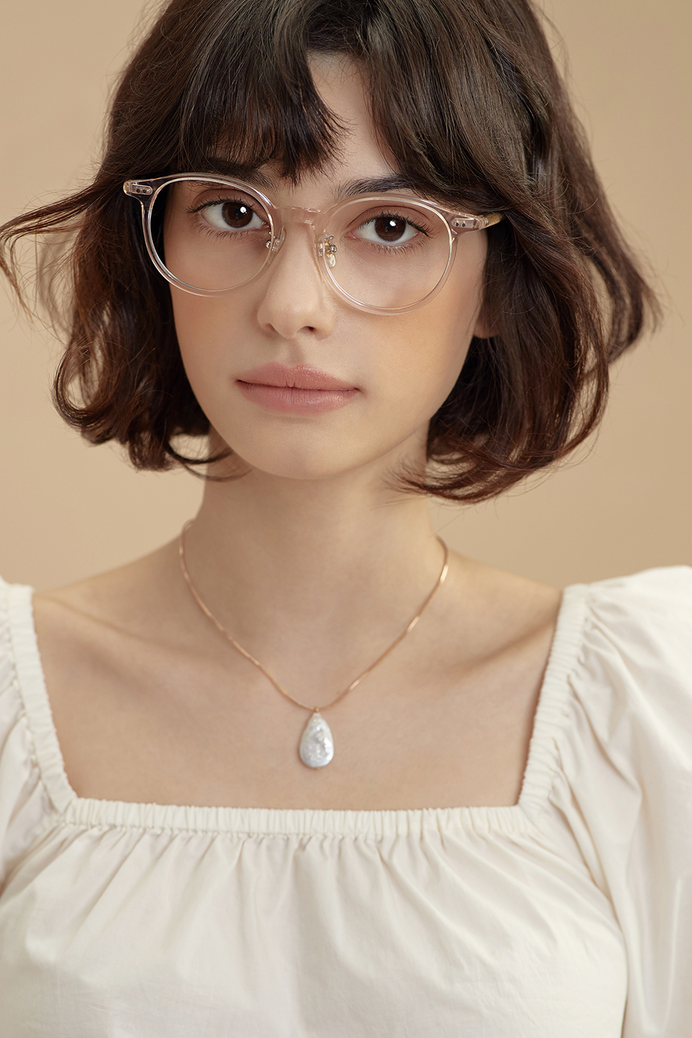 鏡框以流行的 圓形為基礎,以 纖薄比例 展現精緻輕盈的視覺效果。