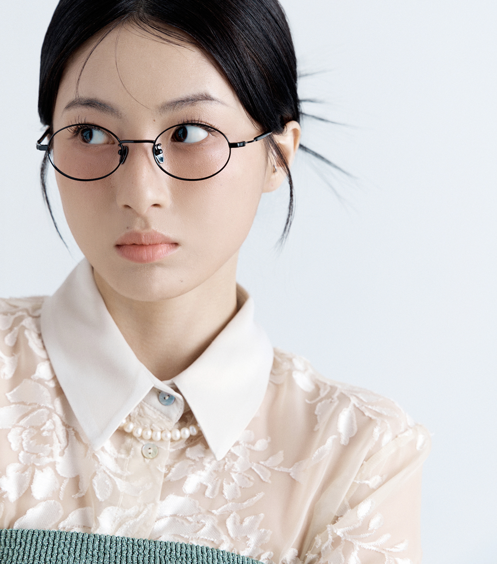這款長橢圓形鈦金屬眼鏡採用精緻的迷你鏡框設計,結構堅固,兼具輕盈與耐用感。
