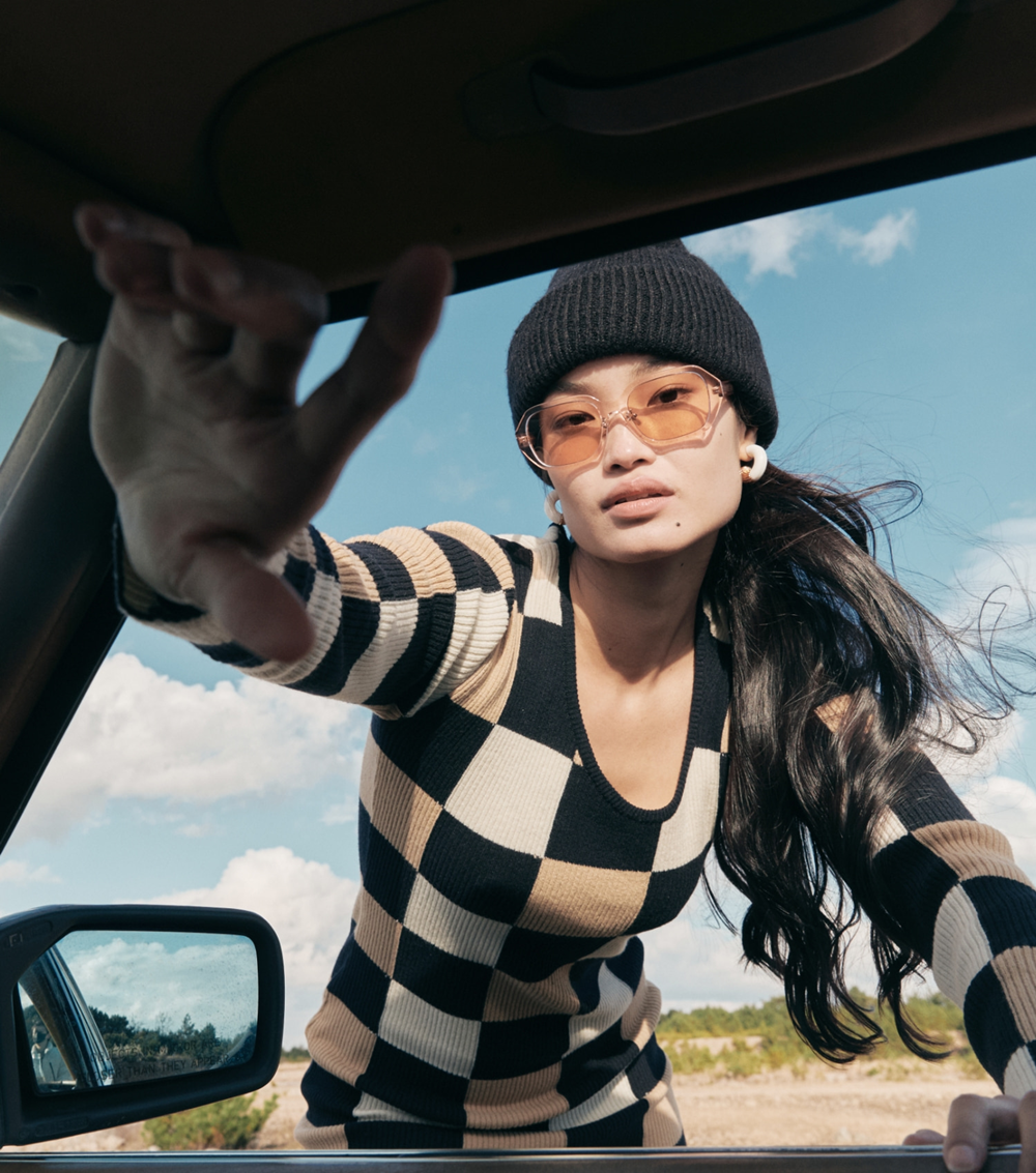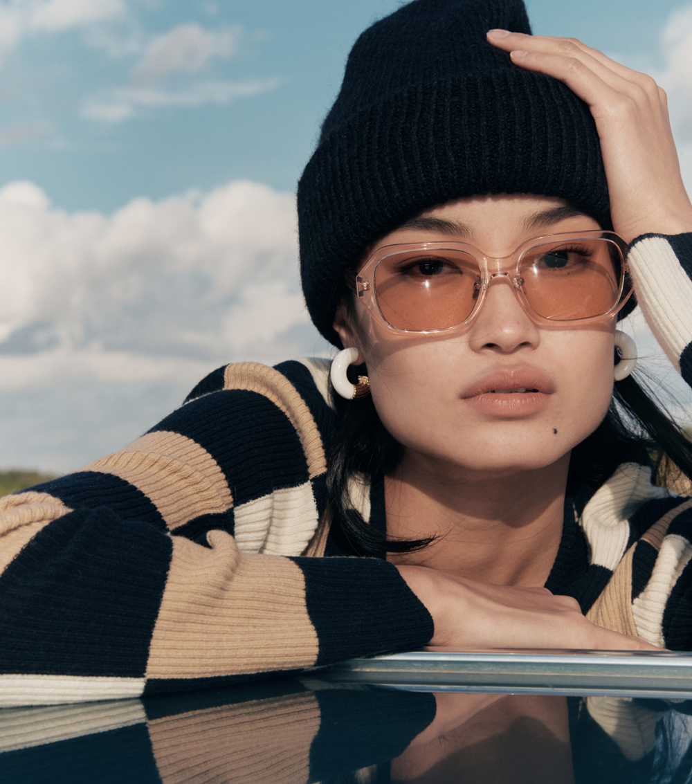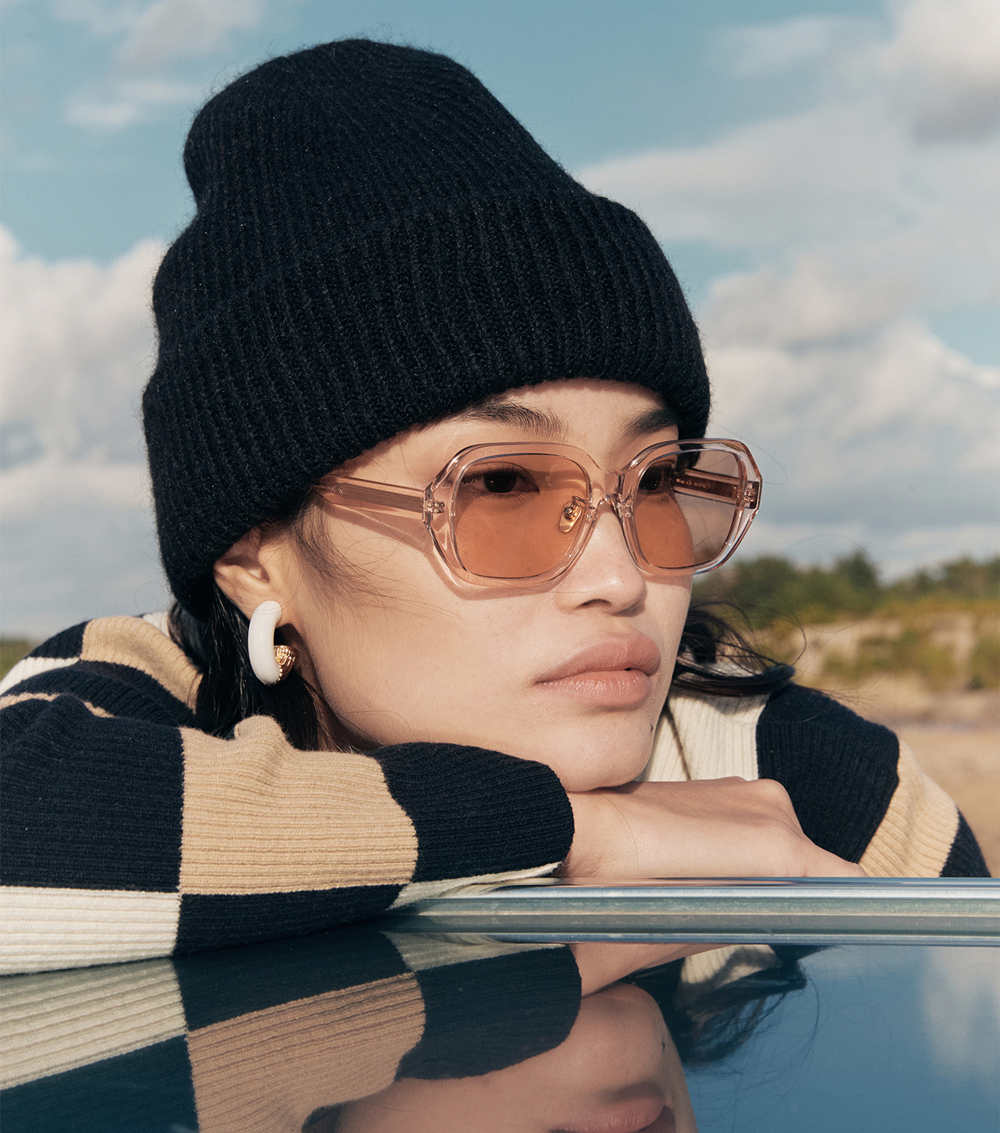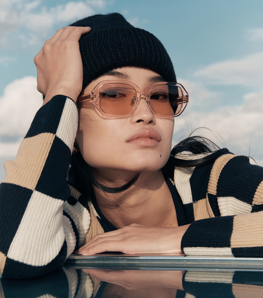 C3 採用透明間距框架搭配香檳色橙鏡片,呈現亮眼、活潑的視覺效果。溫暖橙色調映射出果敢復古氣息,使整體造型既醒目又兼具時尚感。