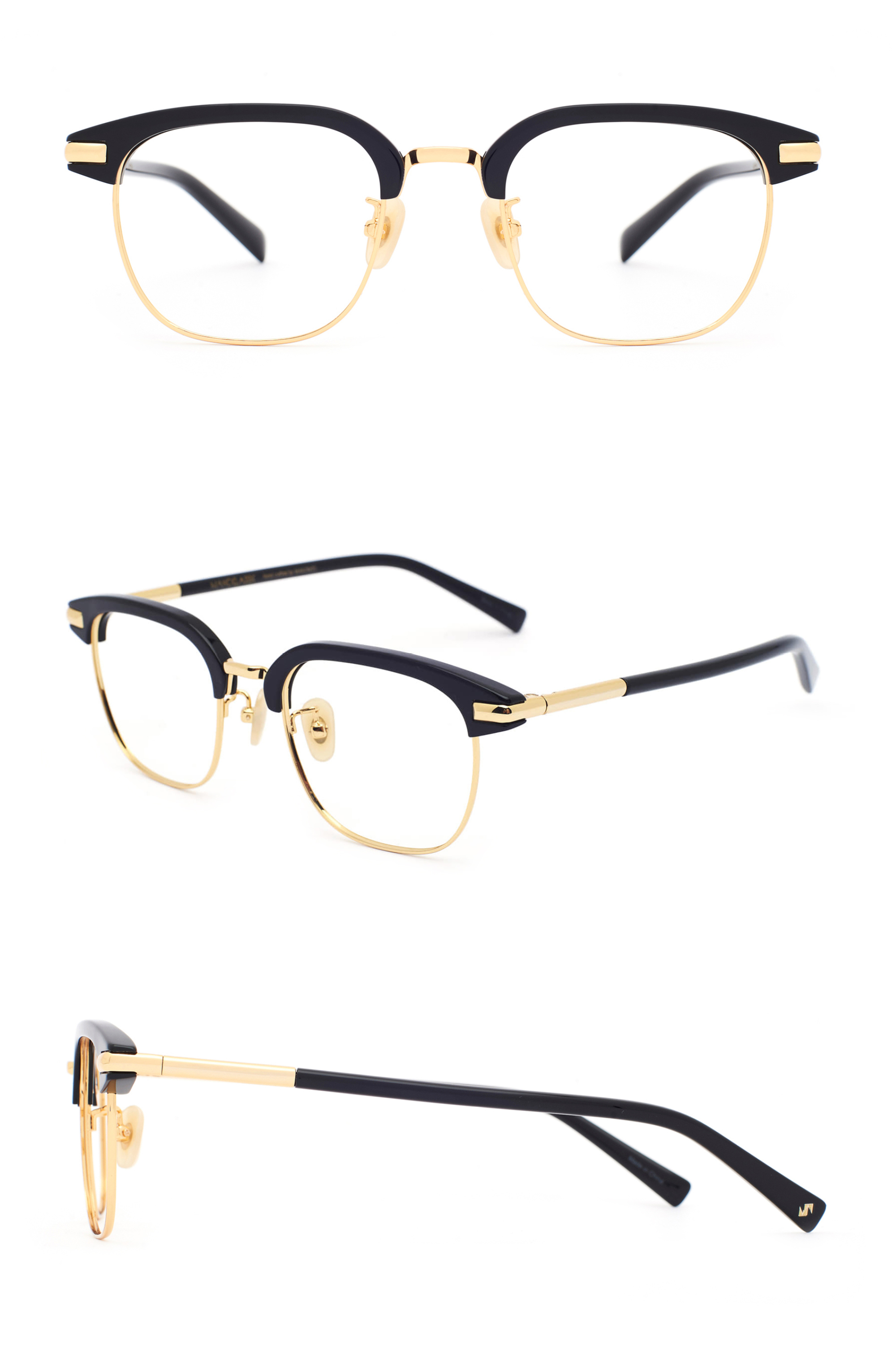 方形眉架框|C1 經典黑 × 金色金屬|奢華經典質感