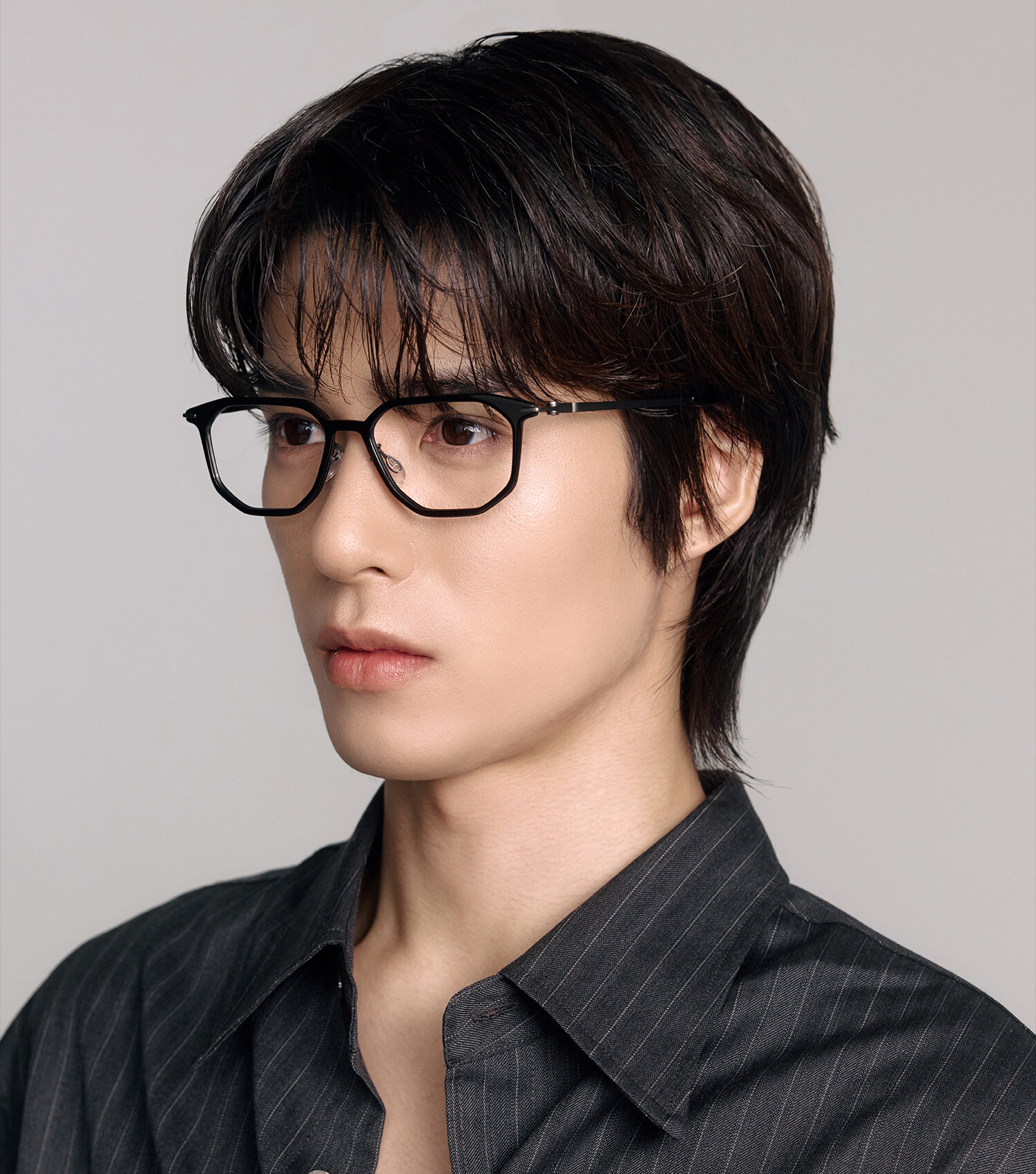 黑色 Acetate × 槍色金屬的組合,呈現俐落沉穩的現代質感