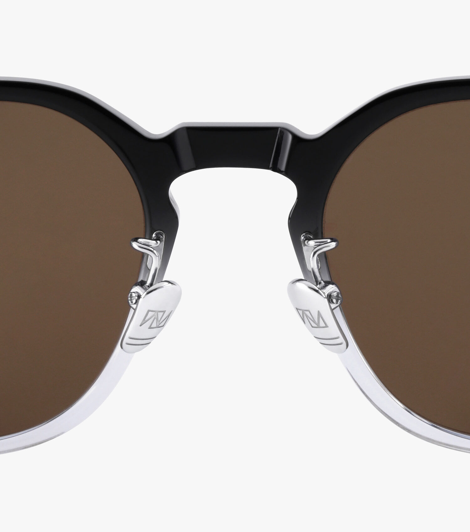在俐落基調中加入一抹溫暖色感。黑色帶來強烈的存在感與乾練風格,而棕色鏡片則增添柔和復古氣息,使整體視覺更具層